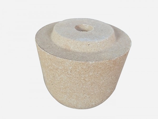 The plug brick is located at the lowest end of the plug rod and the refractory brick which is closely matched with the nozzle brick. When not pouring, it blocks the water inlet to ensure no steel leakage. When pouring, the plug bar shall be raised to make the gap between the plug brick and the nozzle brick, and the molten steel shall flow out of the nozzle. Control the height of plug rod and adjust the outflow of molten steel. The plug block and the core can be fixed by thread or pin. Plug brick can be clay, unburned high alumina and tar impregnated unburned high alumina brick.